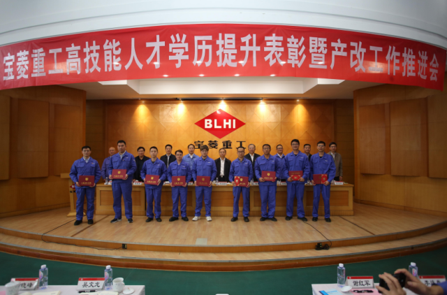 “我是机加工中心一工段的谢滨,感谢公司,感谢学校,提供这么好的一个平台,让我们有机会参加学历提升班对自己进行充电,从而提高自己的知识积累。在这过程中,有激情也有枯燥,但我和大家都坚持了下来。回想当时,大家在一起上课,一起考试的场景,心里便多了些许感动与自豪,这次经历,这也将伴随着并在未来一直鼓励自己持续前行。”10月21日下午,宝菱重工高技能人才学历提升表彰暨产改工作推进会在公司职工活动中心举行。会议表彰谢滨等18名学历提升的高技能人才,总结技能人才培养工作,部署推进下一步产改工作。常州市总工会党组书记、副主席刘卫国出席并讲话。常州宝菱重工机械有限公司总经理朱国敏,江苏理工学院校长、党委副书记崔景贵先后致辞,宝菱重工党委书记朱晓东主持会议。宝菱重工工会主席朱国庆介绍下一阶段产改重点工作安排。