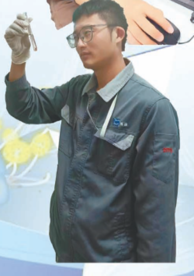 今年29岁的索帅,2016年大学毕业后,来到徐州博康。博康公司作为半导体领域高科技企业,凭借在光刻胶单体的领先优势,建立了全面自主可控的光刻胶供应链。对于只有大专学历的索帅来说,认定“面对挑战,只能勇往直前”,他从基层技术人员一步一个脚印干起,自觉学习专业技术知识,主动参与解决生产过程中出现的问题。