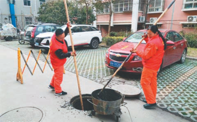 赵霞带领班组员工清掏下水道