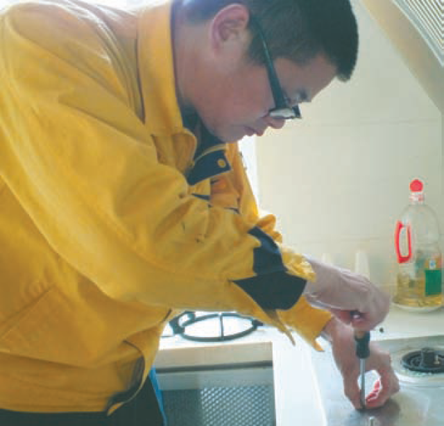 丁延年上门为社区住户维修燃气灶