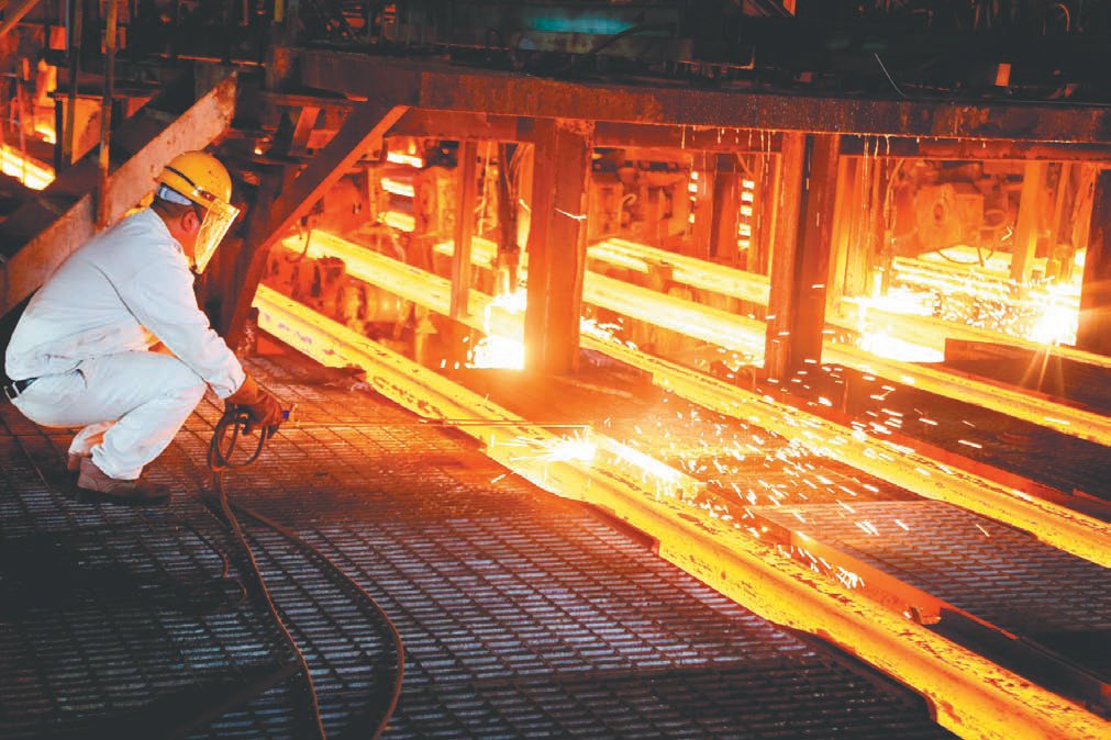 7月13日,工人在连云港市赣榆区柘汪镇一家钢铁企业铸钢车间作业。连日来,该企业生产车间里一派繁忙,工人们冒着高温坚守岗位抢抓生产,确保订单如期交付,全力冲刺下半年“开门红”。
