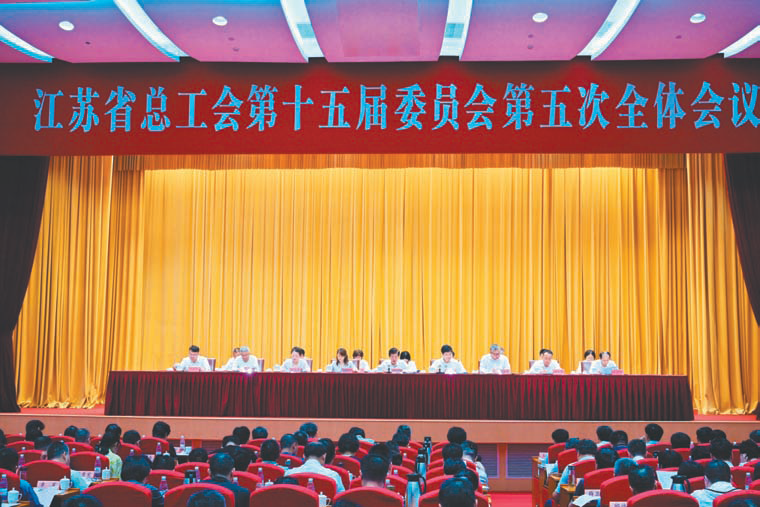 本报讯 (记者 王鑫)7月26日,江苏省总工会十五届五次全委会在南京召开。会议认真学习贯彻党的二十届三中全会精神和习近平总书记关于全面深化改革的重要论述,落实省委十四届六次全会和全总十八届四次主席团会议部署要求,持续深化工会改革和建设,更加有效发挥桥梁和纽带作用,团结动员广大职工为加快打造发展新质生产力的重要阵地,扎实稳健推进中国式现代化江苏新实践贡献力量。省人大常委会副主任、省总工会主席魏国强代表省总工会常委会作工作报告,省总工会党组书记、副主席刘月科主持会议。