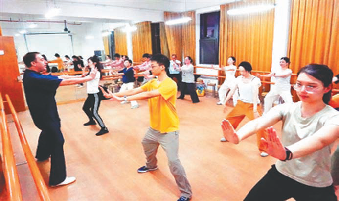 9月2日是开学第一天,上海市民艺术夜校秋季班也迎来了开课的日子。以市群艺馆为总校,联动全市16个区的36个分校363个教学点共计400个点位,1072门课程迎来了近2.5万名学员。图为艺术夜校秋季班新增设的双语太极拳班正在上课。