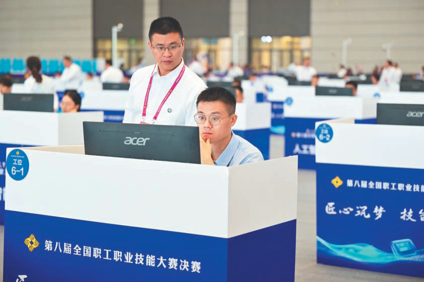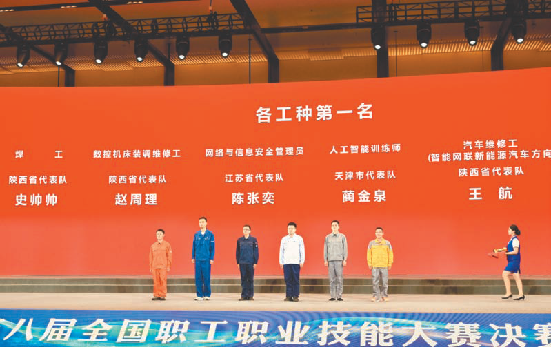 9月11日至13日,第八届全国职工职业技能大赛决赛在陕西举行,来自全国的546名技能精英展开激烈角逐,江苏的18名选手分别参与了本届决赛6个工种的“巅峰对决”。不论是数控机床装调维修赛场上的“毫厘”之争,还是网络与信息安全管理员赛项键盘之上“红蓝对决”;不论是在人工智能训练师赛道引领数智化新时代,还是首次亮相国赛的网约配送员比拼“快稳准”;不论是在飞舞的焊花里赛速度和精度,还是在智能网联新能源方向汽车维修工赛项进行智慧大对决,江苏选手都是全力以赴、奋勇拼搏、精益求精,展现出新时代江苏产业工人队伍的风采。