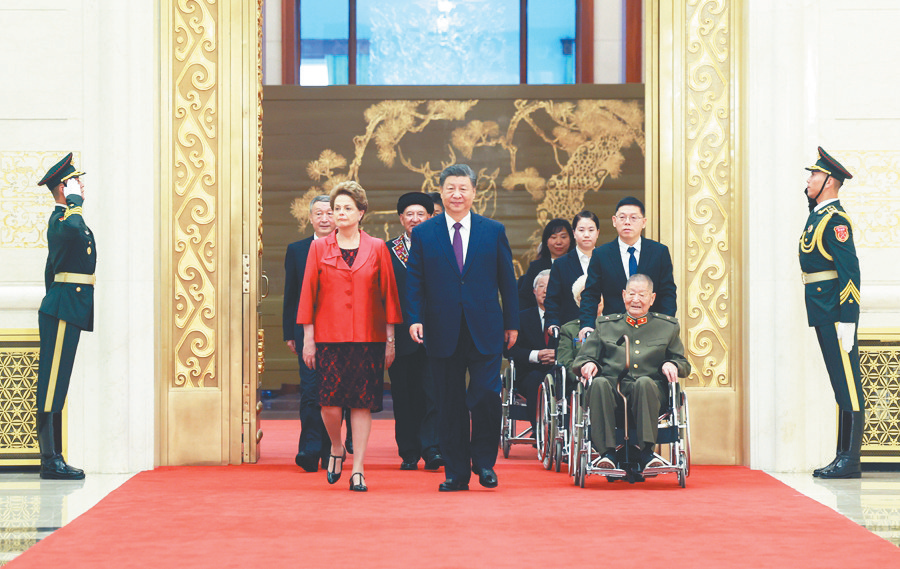 习近平指出,75年来,世界上有很多与中国人民志同道合、风雨同舟的老朋友、好朋友,今天被授予“友谊勋章”的迪尔玛·罗塞芙女士就是其中的杰出代表。中国人民永远不会忘记那些为中国发展、增进中国人民同各国人民友谊作出突出贡献的国际友人。中国人民愿携手世界各国人民,维护世界和平,促进共同发展,推动构建人类命运共同体,开创人类更加美好的未来。