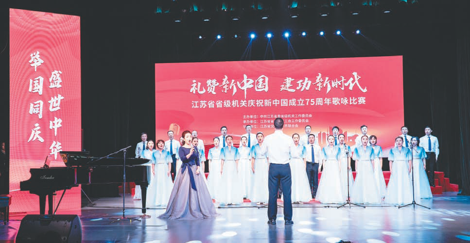 9月27日,省级机关庆祝新中国成立75周年歌咏比赛圆满落幕。在为期2天的比赛中,共有64个单位2200人参赛,通过独唱、小合唱、大合唱三种形式,共演绎了117首红色经典歌曲、历史革命歌曲,唱响了歌颂祖国的美好旋律。省总工会代表队获得小合唱组比赛三等奖。