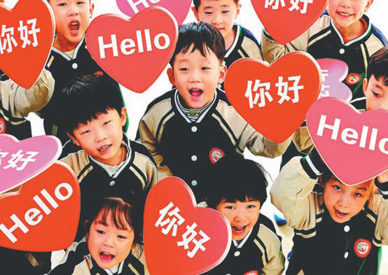 在11月21日“世界问候日”到来之际,枣庄市中小学、幼儿园开展丰富多彩的主题活动,孩子们通过不同的方式表达祝福,传递温情。图为市中区丝雨幼儿园的小朋友在向全世界小朋友问好。