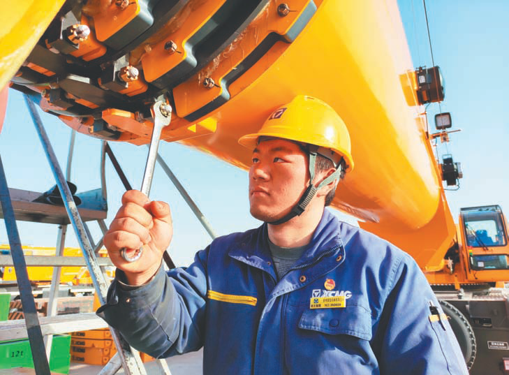 轮式起重机是工程机械的典型产品,具有多品种、小批量、高度离散的特点,结构件大、零部件近万种、工序多、装配复杂。从踏入职业生涯起,陈佳伟、王国强就珍惜当下,对待每一款车型就像心爱的“玩具”般,在装配、调试、维修领域储备了丰富的理论知识,收获技能提升的快乐。