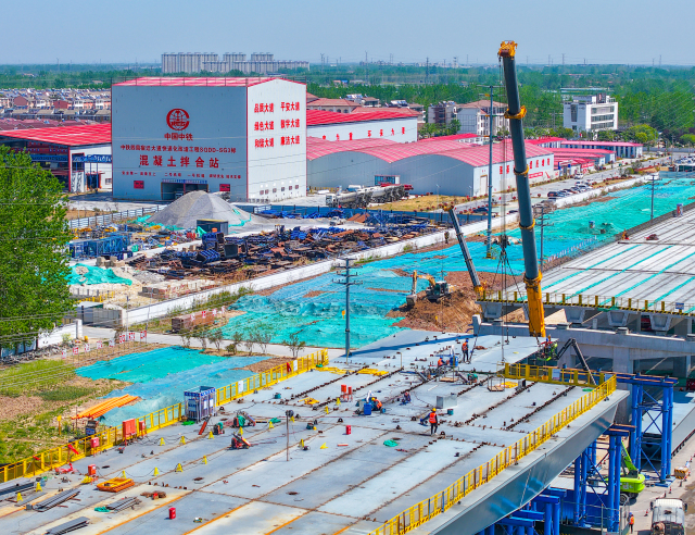 宿迁大道项目最长连续钢箱梁架设完成
