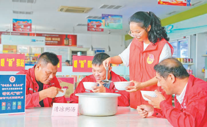 海安市墩头镇墩东加油站司机之家为货车司机发放清凉粥汤