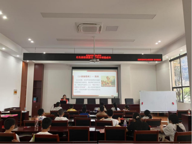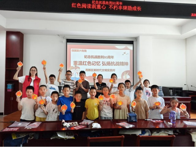 7月29日上午,结合中国人民抗日战争暨世界反法西斯战争胜利80周年纪念节点,“红色阅读润童心 不朽丰碑励成长”主题活动以沉浸式教育赓续红色血脉。志愿者以绘本故事的形式,讲述了王二小、雨来等少年英雄的事迹。当听到13岁的王二小为保护转移乡亲们,被落入八路军埋伏圈的敌人残忍杀害时,,许多孩子红了眼眶。