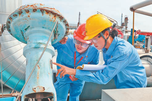 中国石化扬子石化芳烃厂开展工艺流程大排查活动,通过“一名基层骨干+一名班组新人”的双确认模式,重点核查阀门选型、旁路及小接管等关键细节,现场拆解流程原理,有效促进新员工的快速成长。