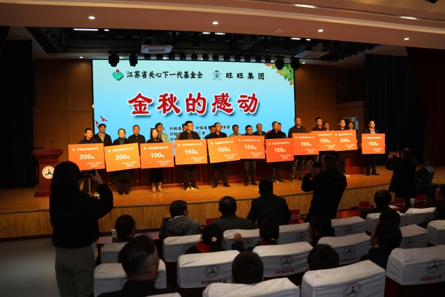 11月6日,江苏省关心下一代基金会联合旺旺集团南京大旺食品有限公司分公司来到苏北革命老区盱眙县黄花塘镇开展“金秋感动”关爱中小学生活动,江苏省关心下一代基金会理事长徐国林、南京大旺食品有限公司分公司区域总监潘御林等相关人员及师生代表共200多人参加了活动。