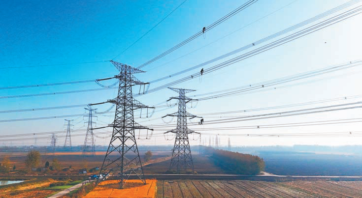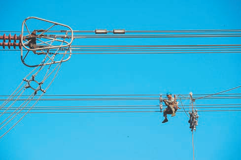 国网无锡供电公司对500千伏阳珉线开展综合检修,进一步提升供电设备健康运行水平,保障“迎峰度冬”期间电力可靠供应。图为该公司员工在更换间隔棒。