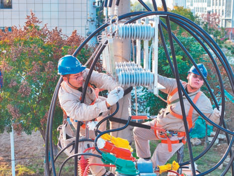 11月12日,国网江苏连云港供电公司技术人员在对500千伏艾湖线进行走线检修。入冬以来,该公司组织专人对500千伏输电设备,开展全面健康“体检”,有效保障“迎峰度冬”期间生产生活用电平稳有序。