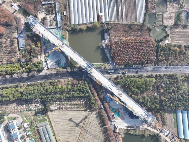中铁四局南京分公司宁(南京)淮(安)城际铁路跨规划路G235连续梁合龙