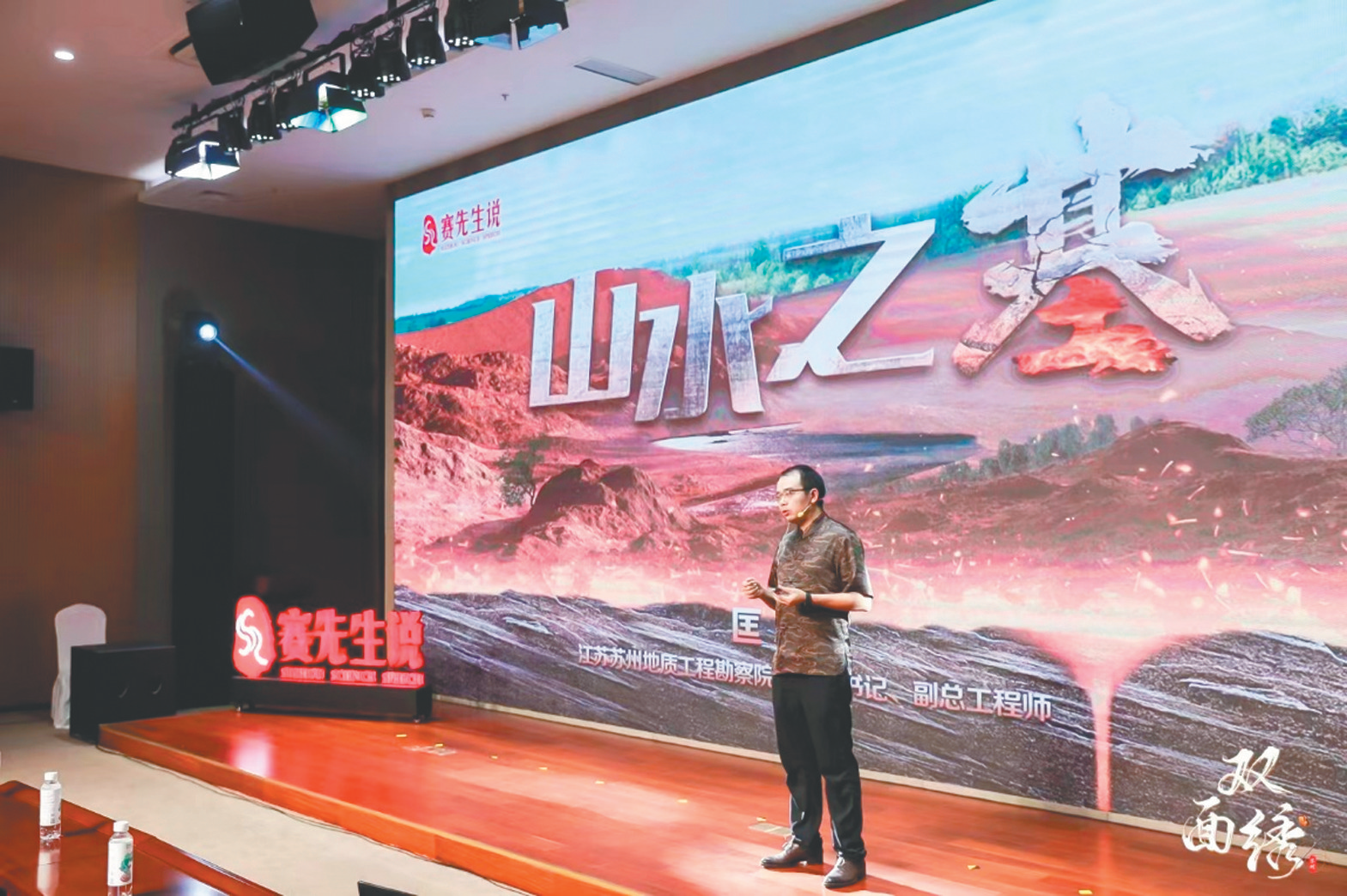 匡俊不仅是出色的工程师,更是热心的地质科普“传播者”,并获评“苏州科普大使”。他多次受邀开展地灾科普讲座,助力提升全民防灾减灾意识,还积极参与地质科普进企业、进社区、进校园活动,被聘为校外专家。在苏州新区二中等学校,他用妙趣横生的案例和生动的讲解,向学生介绍地球结构、矿产资源、奇峰异景及地灾防治知识,引导大家增强护地球、保环境的意识与能力。
