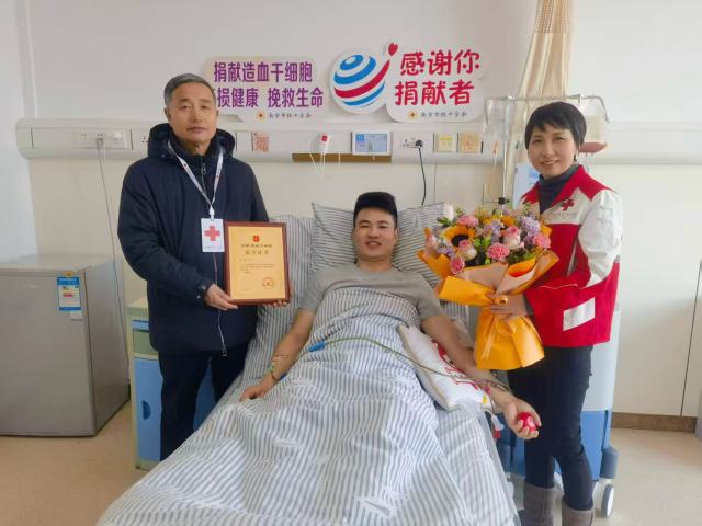 经过连日准备,1月9日上午,丁敏完成了造血干细胞采集。过程中,秦淮区红十字会工作人员全程陪伴,为其送上鲜花与荣誉证书,并转达了受捐者家庭的深深谢意。丁敏说:“作为一名曾经的医学生,‘健康所系、性命相托’的誓言我一直铭记。这次捐献不仅是一次爱心行动,更是我对生命承诺的践行。”