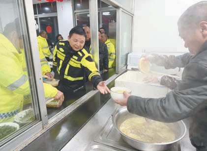 1月20日凌晨4点,南京市公路中心绕城工区为扫雪除冰归来的一线人员,送上热乎乎的羊肉汤,以暖胃热餐保障后勤。公路养护人员目前还在持续融雪撒布,确保道路通行畅通。
