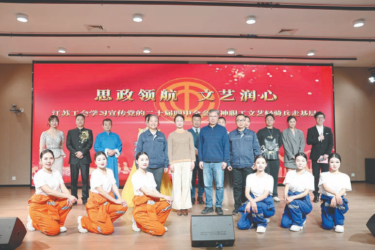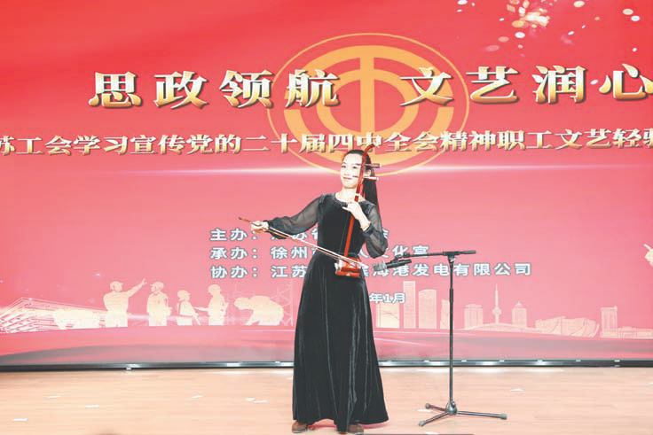 1月15日下午,“思政领航 文艺润心”——江苏工会学习贯彻党的二十届四中全会精神职工文艺轻骑兵走基层活动,在江苏国信滨海港发电有限公司举办。本次活动由江苏省总工会主办,徐州市工人文化宫承办,江苏国信滨海港发电有限公司协办。徐州市总工会职工艺术团二十余位演职人员奔赴黄海之滨,走进蓬勃发展的滨海港,为坚守在电力生产一线的国信滨电公司干部职工带来了一堂别开生面的“中国工人大思政课”,以艺术为载体,弘扬劳模精神、劳动精神、工匠精神,推动党的创新理论在基层落地生根、绽放光彩。本次活动以“文艺+思政”的形式,实现职工思想引领与文化滋养的深度融合,不仅丰富了基层职工的精神文化生活,更进一步凝聚了人心、鼓舞了干劲。