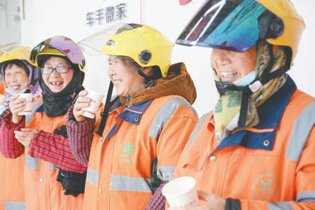 寒冬时节,宿迁市宿豫区电商园区的蜂享驿站内暖意融融,社区志愿者为在这里歇脚的环卫工人递上热水,让户外劳动者们暖心暖胃。
