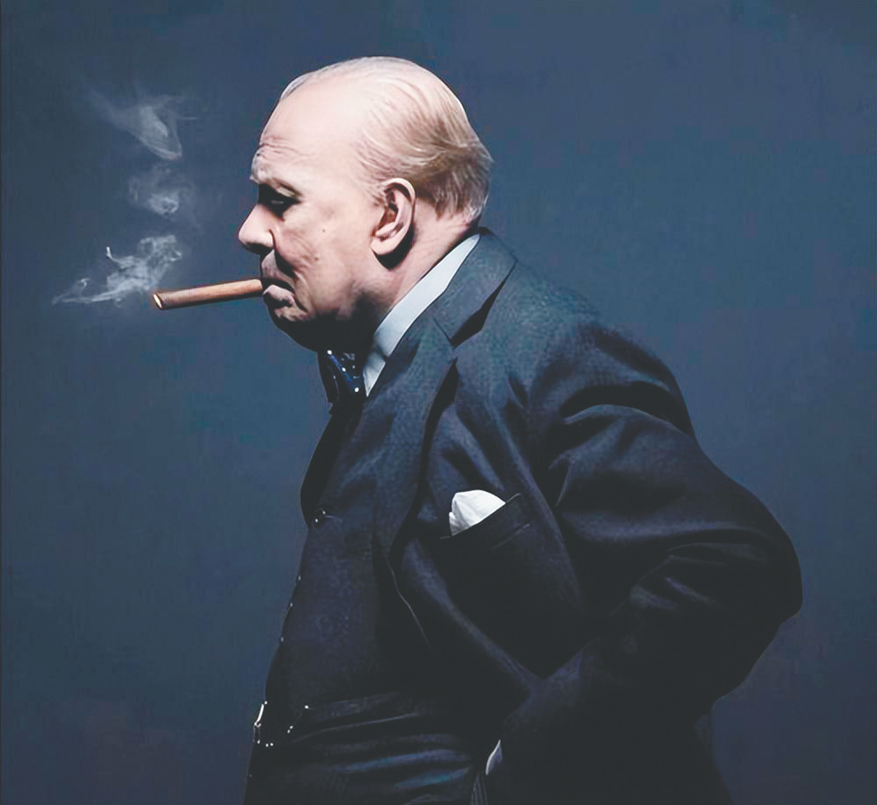 《至暗时刻》,叼着雪茄、眼神坚毅的温斯顿·丘吉尔