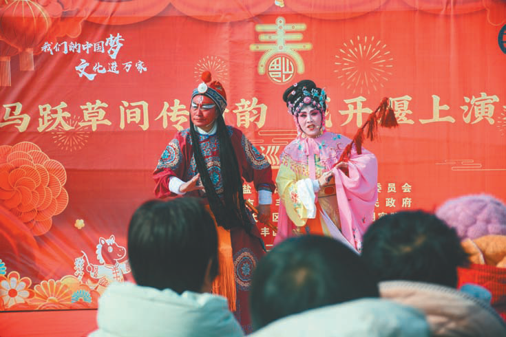 右图:2月25日上午,“马跃草间传新韵 戏开堰上演春风”——2026年盐城市大丰老区草堰镇春节“送戏下乡”文艺演出,在双垛村村部广场精彩上演。据悉,“送戏下乡”是大丰老区精神文明建设的特色品牌,至今已走过32个年头,始终坚持用文艺暖流点亮全镇百姓的新春时光。