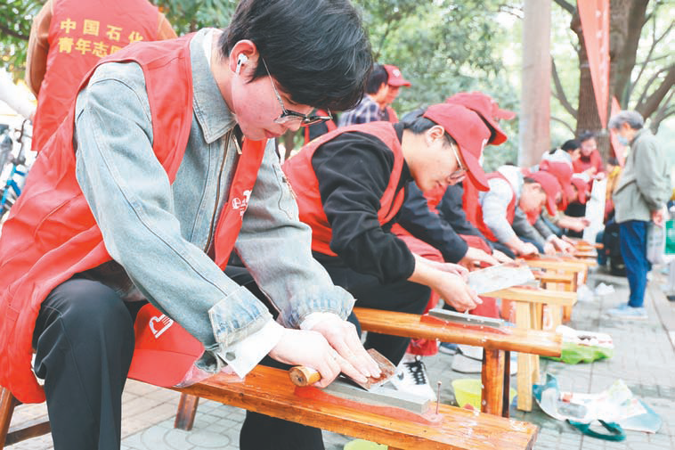 第63个学雷锋纪念日到来之际,扬子石化芳烃部志愿者走进社区为居民磨剪子、磨菜刀,用实际行动传承和践行雷锋精神。该活动他们已坚持30多年连续不辍。
