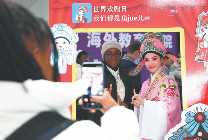 3月24日,镇江市江苏大学举办“镇江有戏缘 四海结知音”留学生戏曲体验活动,来自镇江市艺术创研中心的扬剧演员走进校园,穿戏服、唱扬剧,指导留学生学习体验扬剧表演技巧,感受中国文化魅力,迎接即将到来的世界戏剧日。