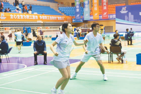 3/34月14日,江苏省第二十一届运动会职工部羽毛球比赛在镇江经开区大港体育馆正式开赛。